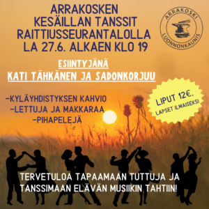 Arrakoskella kesäillan tanssit Raittiusseurantalolla la 27.6. klo 19 alkaen!